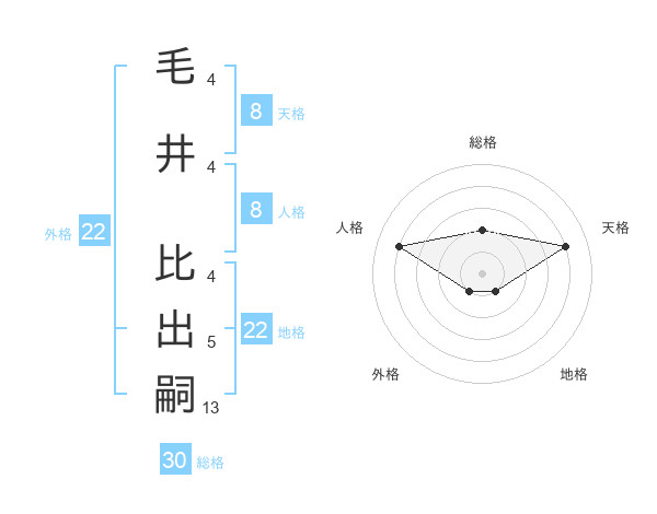 毛井 比出嗣さんの天格は8画の4点!