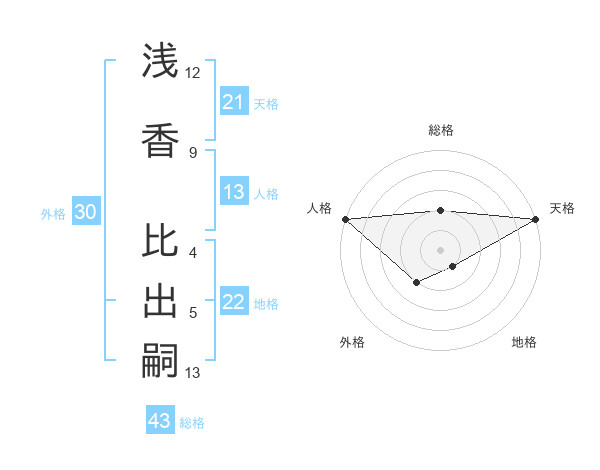 浅香 比出嗣さんを姓名の画数から五運を鑑定