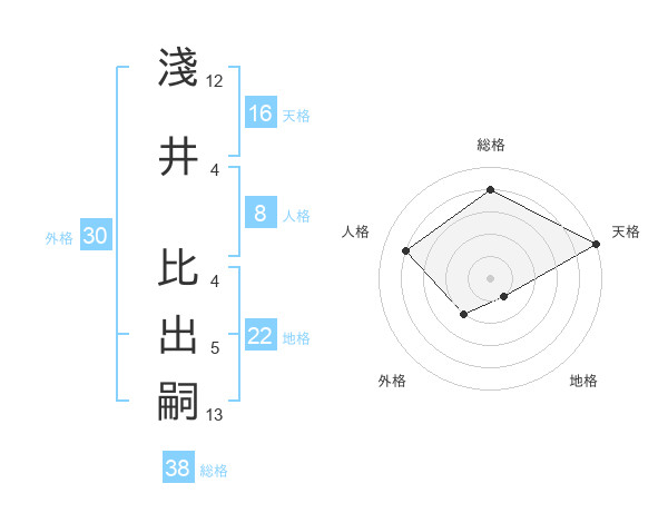 淺井 比出嗣さんを姓名の画数から五運を鑑定
