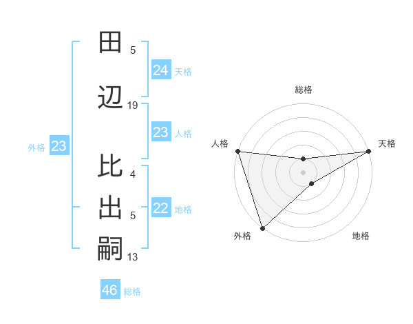 田辺 比出嗣さんを姓名の画数から五運を鑑定