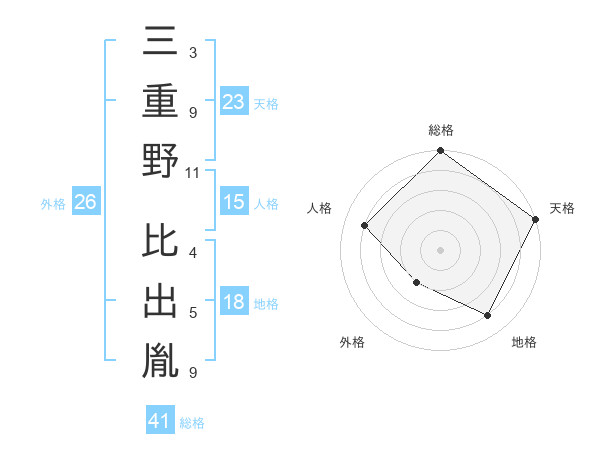 三重野 比出胤さんの総格は41画の5点!