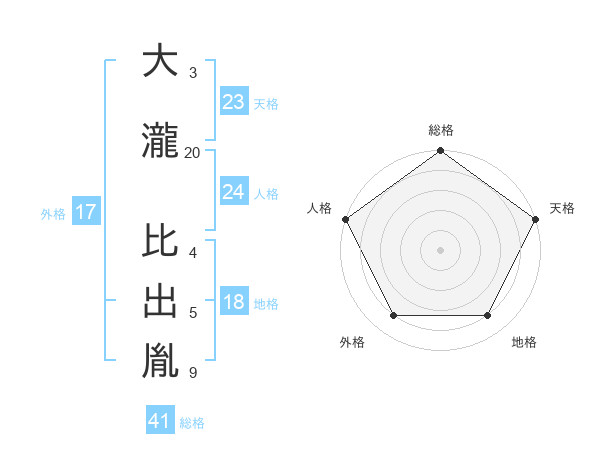 大瀧 比出胤さんを姓名の画数から五運を鑑定