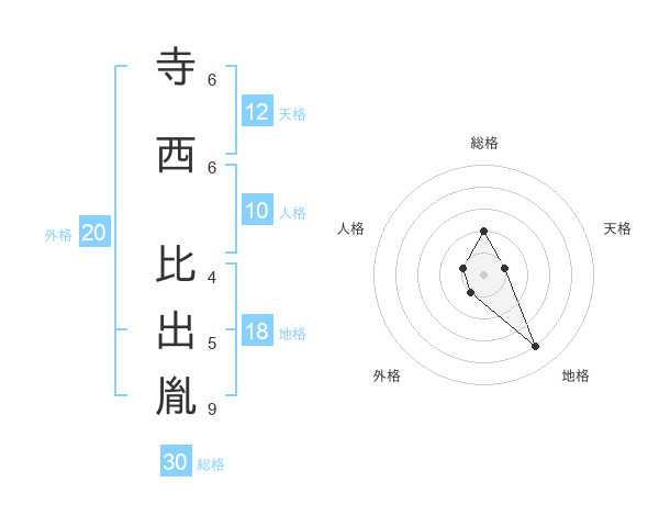 寺西 比出胤さんの総格は30画の2点!