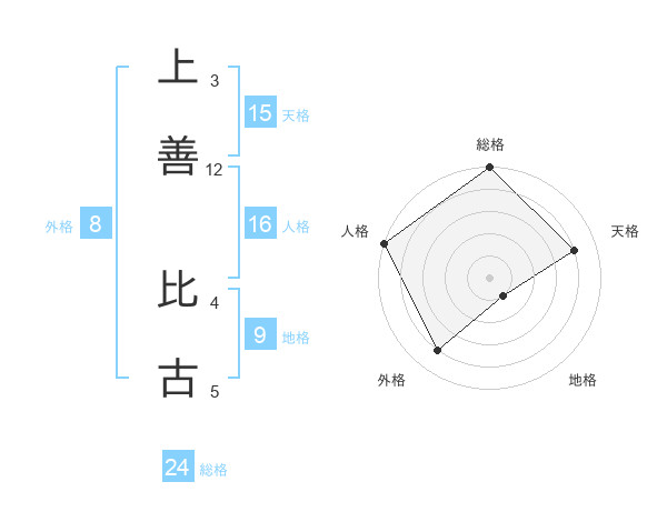 上善 比古さんの外格は8画の4点!