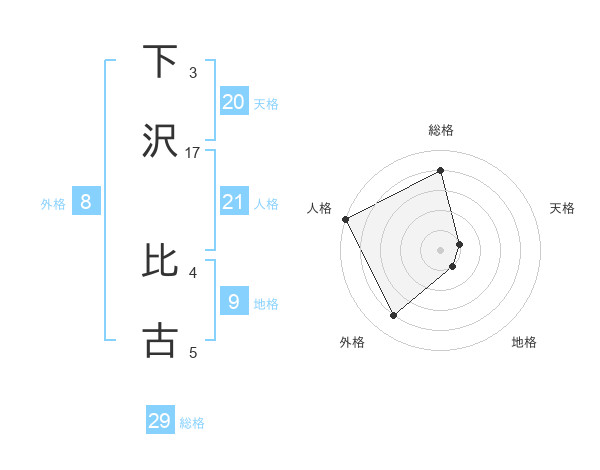 下沢 比古さんの総格は29画の4点!