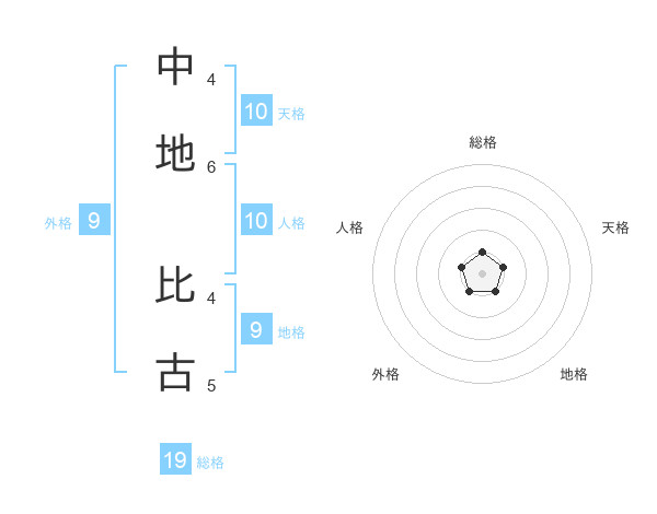 中地 比古さんの総格は19画の1点!