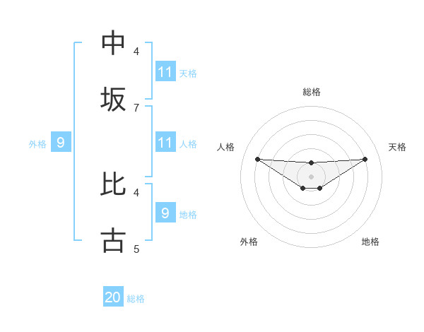 中坂 比古さんの総格は20画の1点!