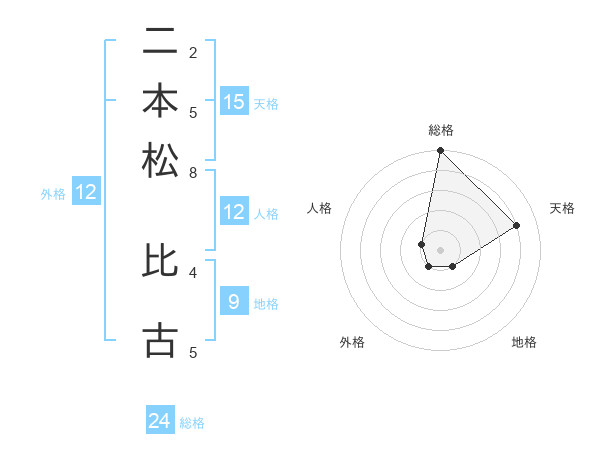 二本松 比古さんの総格は24画の5点!