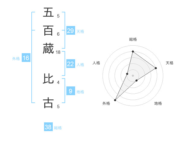 五百蔵 比古さんの総格は38画の4点!