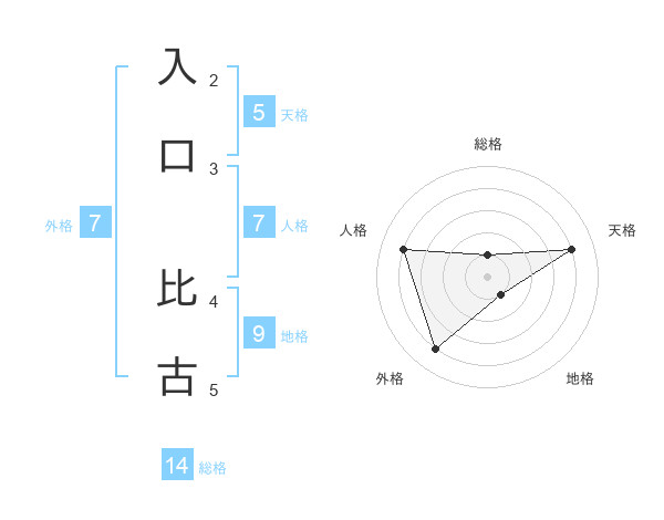 入口 比古さんの総格は14画の1点!