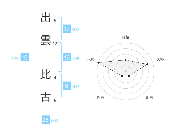 出雲 比古さんの天格は17画の4点!