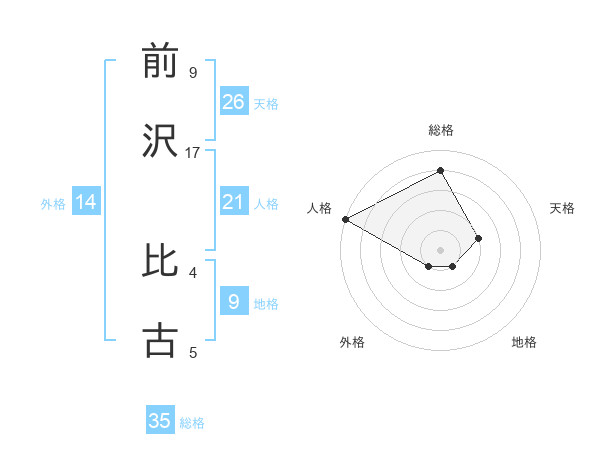 前沢 比古さんの総格は35画の4点!