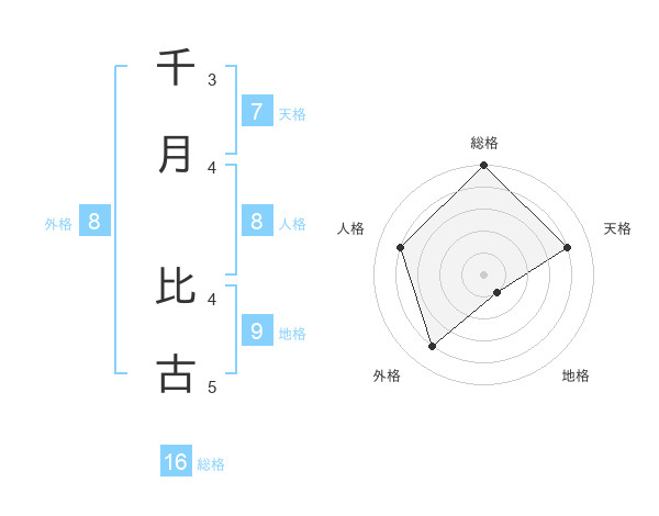 千月 比古さんの外格は8画の4点!