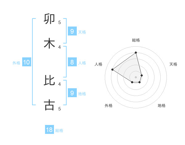卯木 比古さんの天格は9画の1点!
