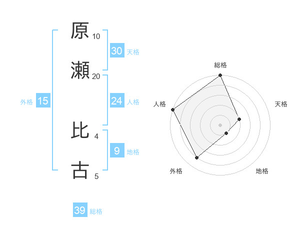 原瀬 比古さんの総格は39画の5点!