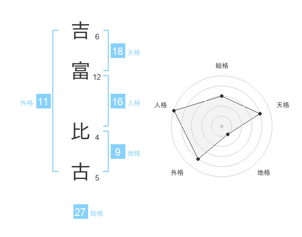 吉富 比古さんの総格は27画の3点!