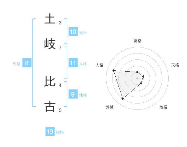 土岐 比古さんの総格は19画の1点!