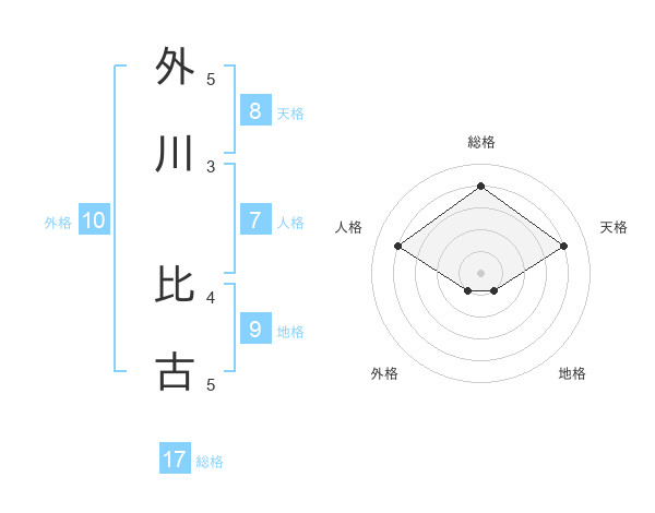 外川 比古さんの総格は17画の4点!
