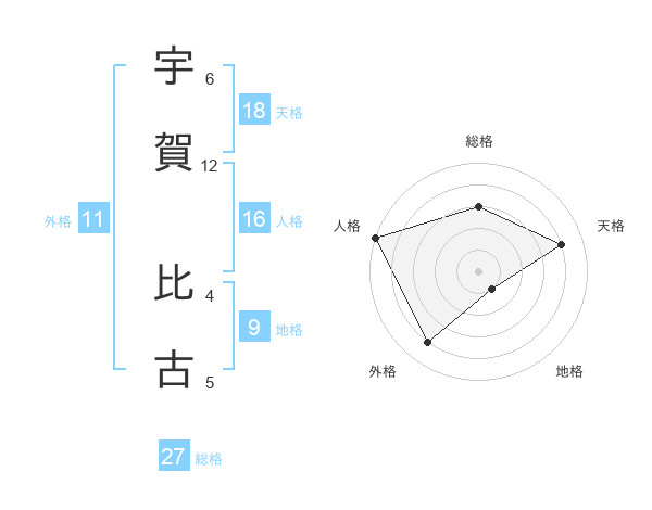 宇賀 比古さんを姓名の画数から五運を鑑定