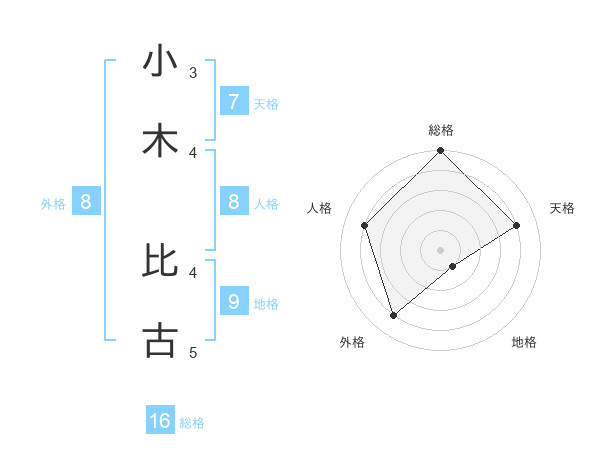 小木 比古さんの総格は16画の5点!