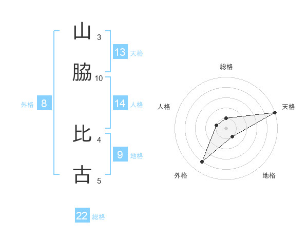 山脇 比古さんの総格は22画の1点!