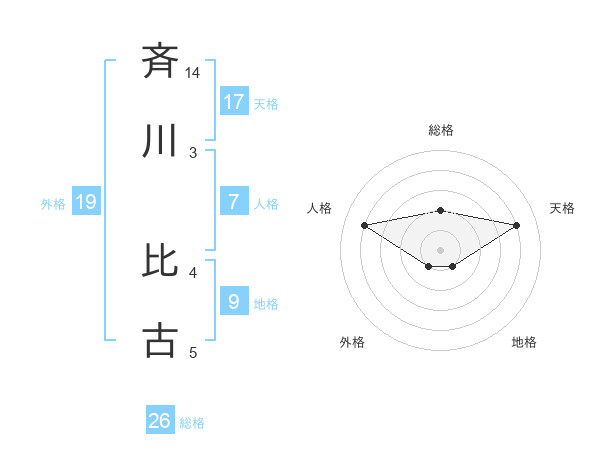 斉川 比古さんの総格は26画の2点!