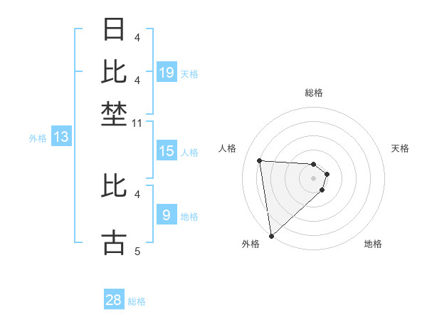 日比埜 比古さんの外格は13画の5点!