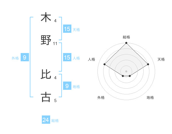 木野 比古さんの天格は15画の4点!