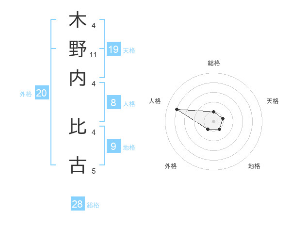 木野内 比古さんの総格は28画の1点!
