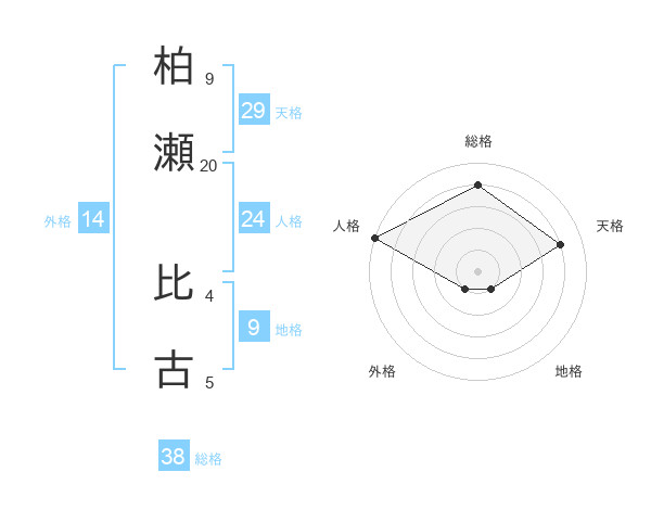 柏瀬 比古さんの総格は38画の4点!