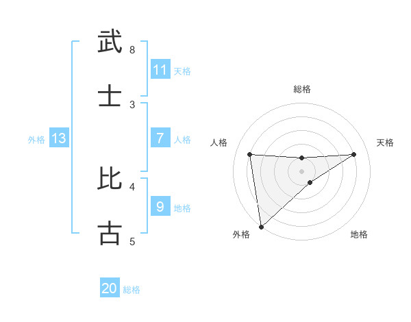 武士 比古さんの総格は20画の1点!
