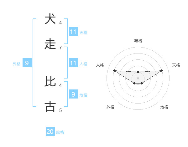 犬走 比古さんの総格は20画の1点!