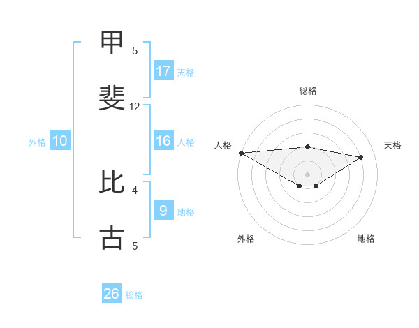 甲斐 比古さんを姓名の画数から五運を鑑定