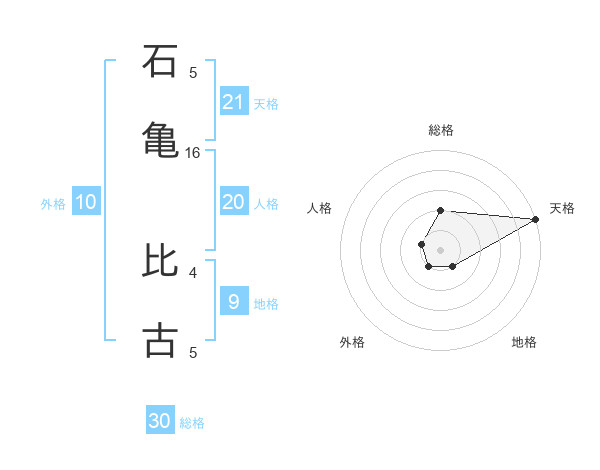 石亀 比古さんの天格は21画の5点!