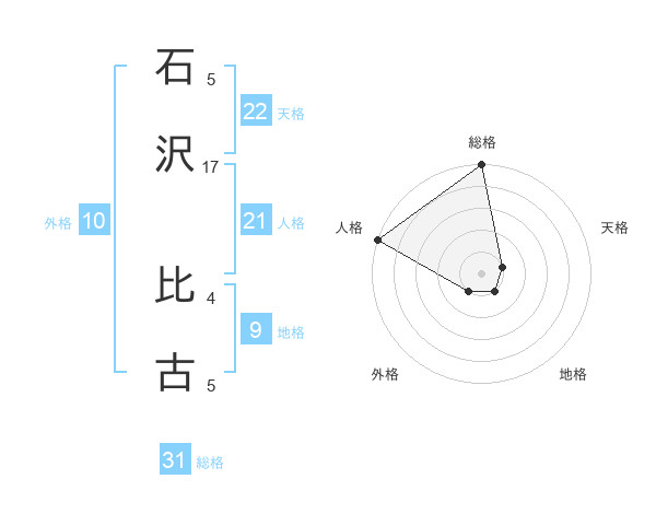 石沢 比古さんの総格は31画の5点!