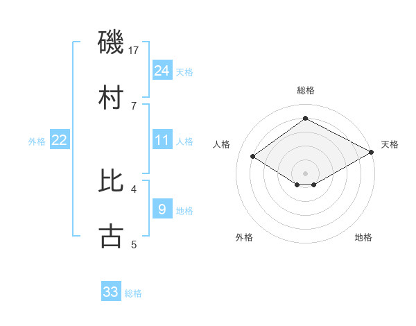 磯村 比古さんの総格は33画の4点!