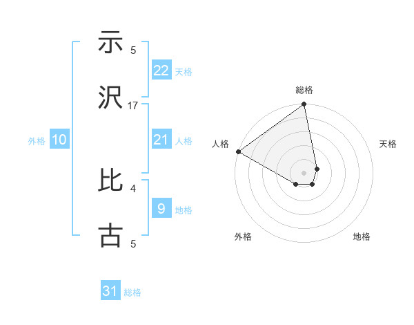 示沢 比古さんの総格は31画の5点!