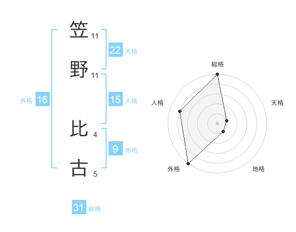 笠野 比古さんの総格は31画の5点!