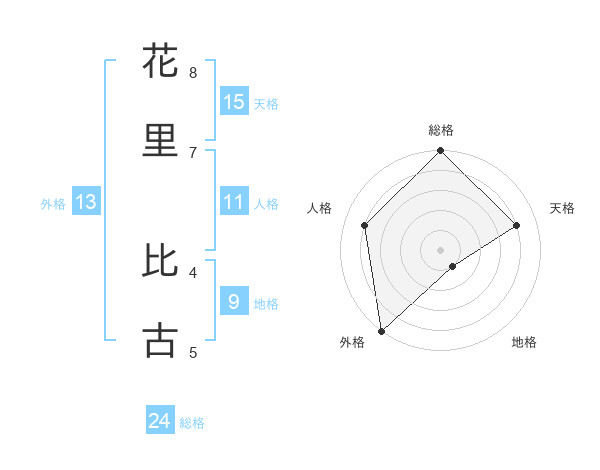 花里 比古さんの外格は13画の5点!