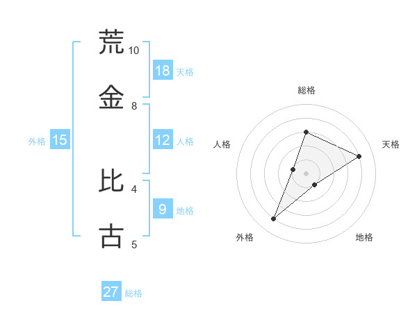 荒金 比古さんの総格は27画の3点!