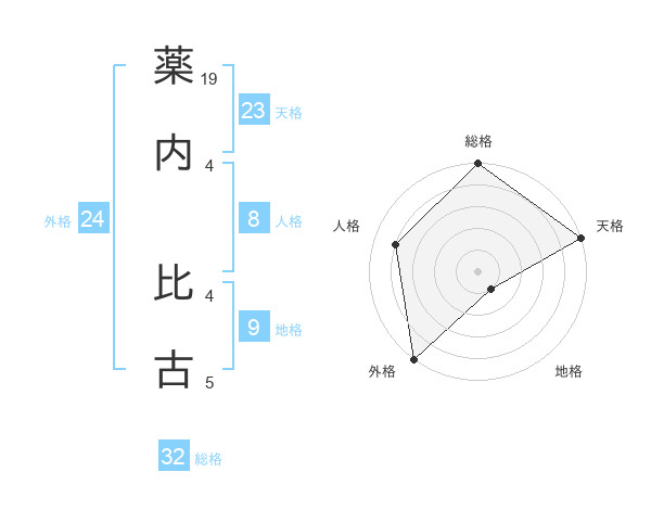 薬内 比古さんの総格は32画の5点!