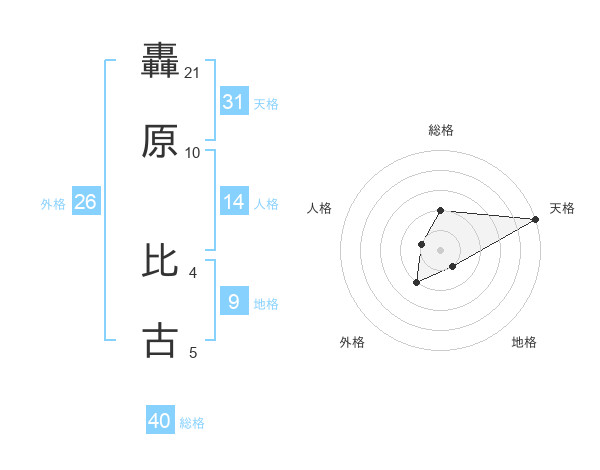轟原 比古さんの総格は40画の2点!
