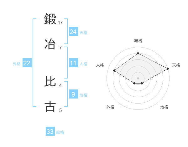 鍛冶 比古さんの総格は33画の4点!