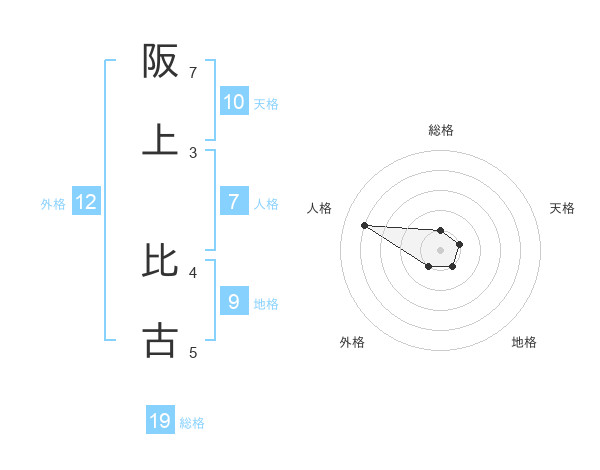 阪上 比古さんの総格は19画の1点!