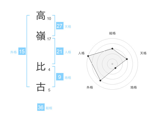 高嶺 比古さんの総格は36画の3点!