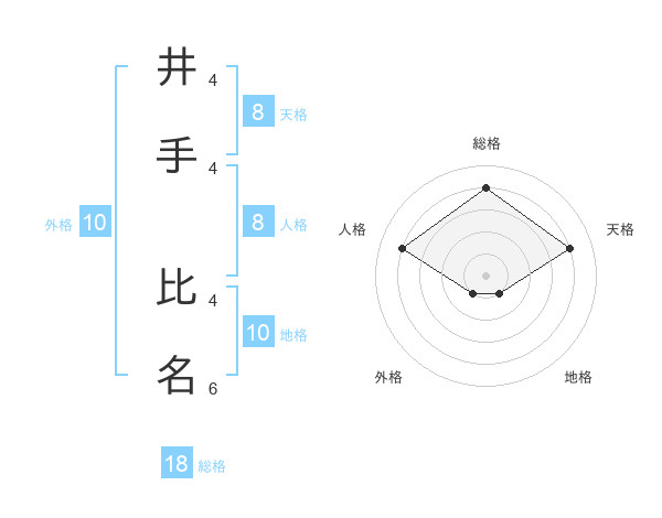 井手 比名さんの総格は18画の4点!