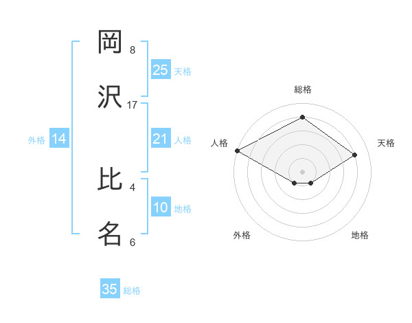 岡沢 比名さんの人格は21画の5点!