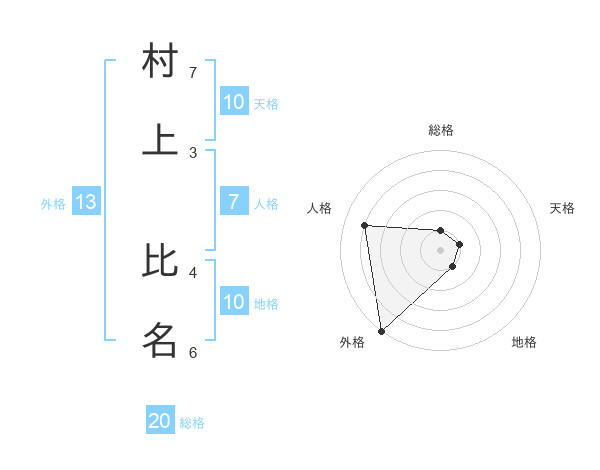 村上 比名さんの外格は13画の5点!