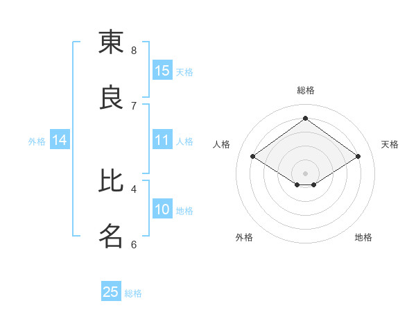 東良 比名さんの天格は15画の4点!