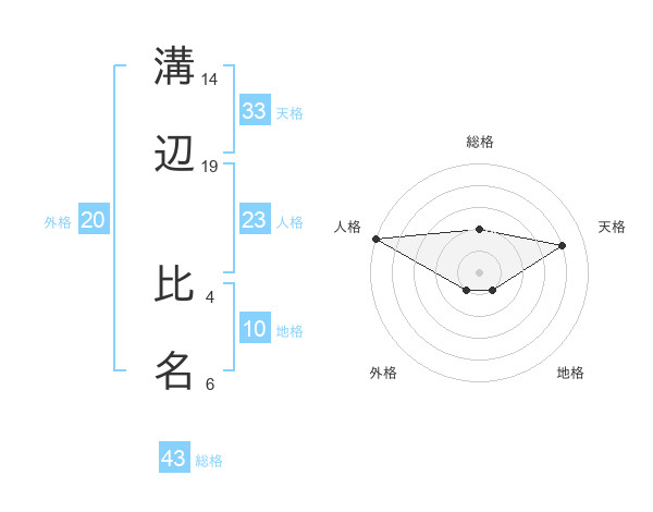 溝辺 比名さんの総格は43画の2点!